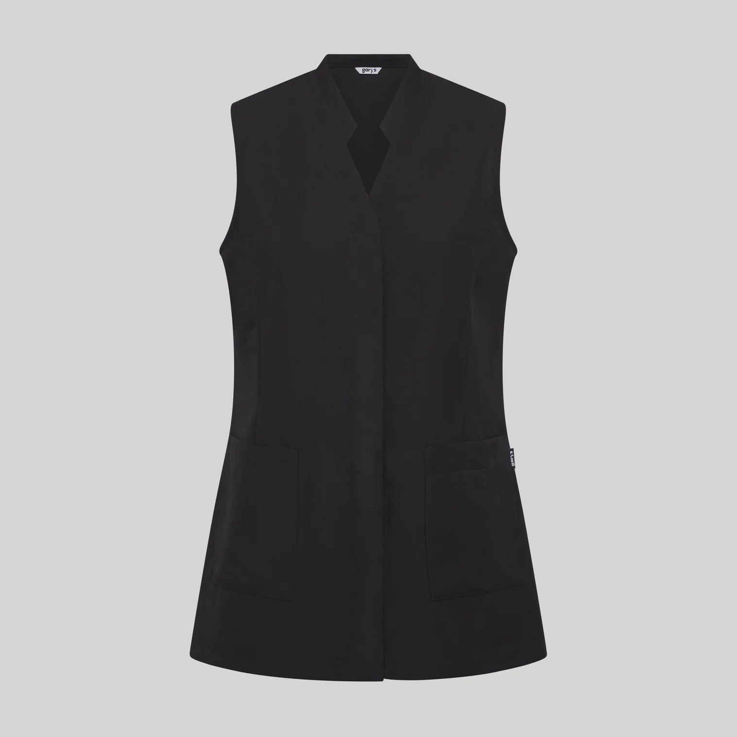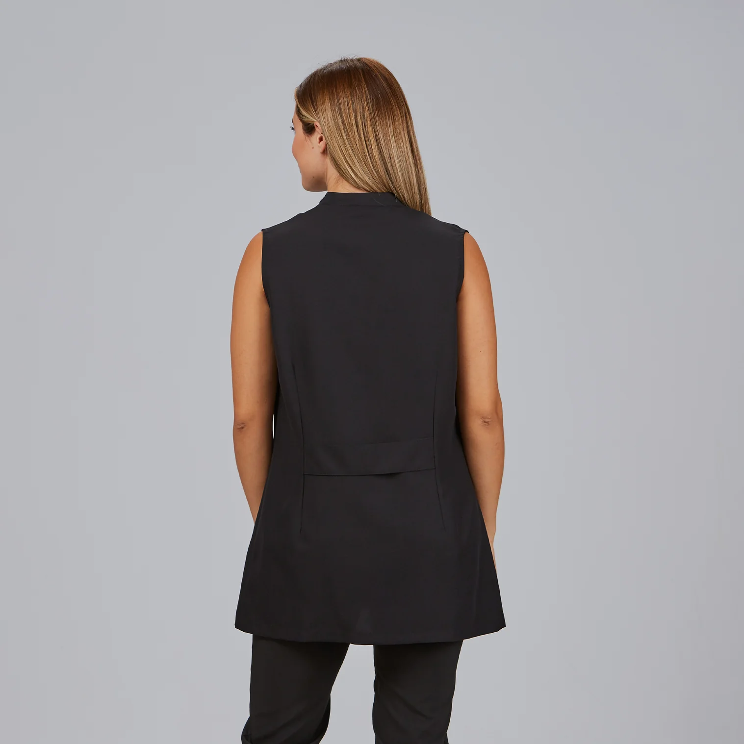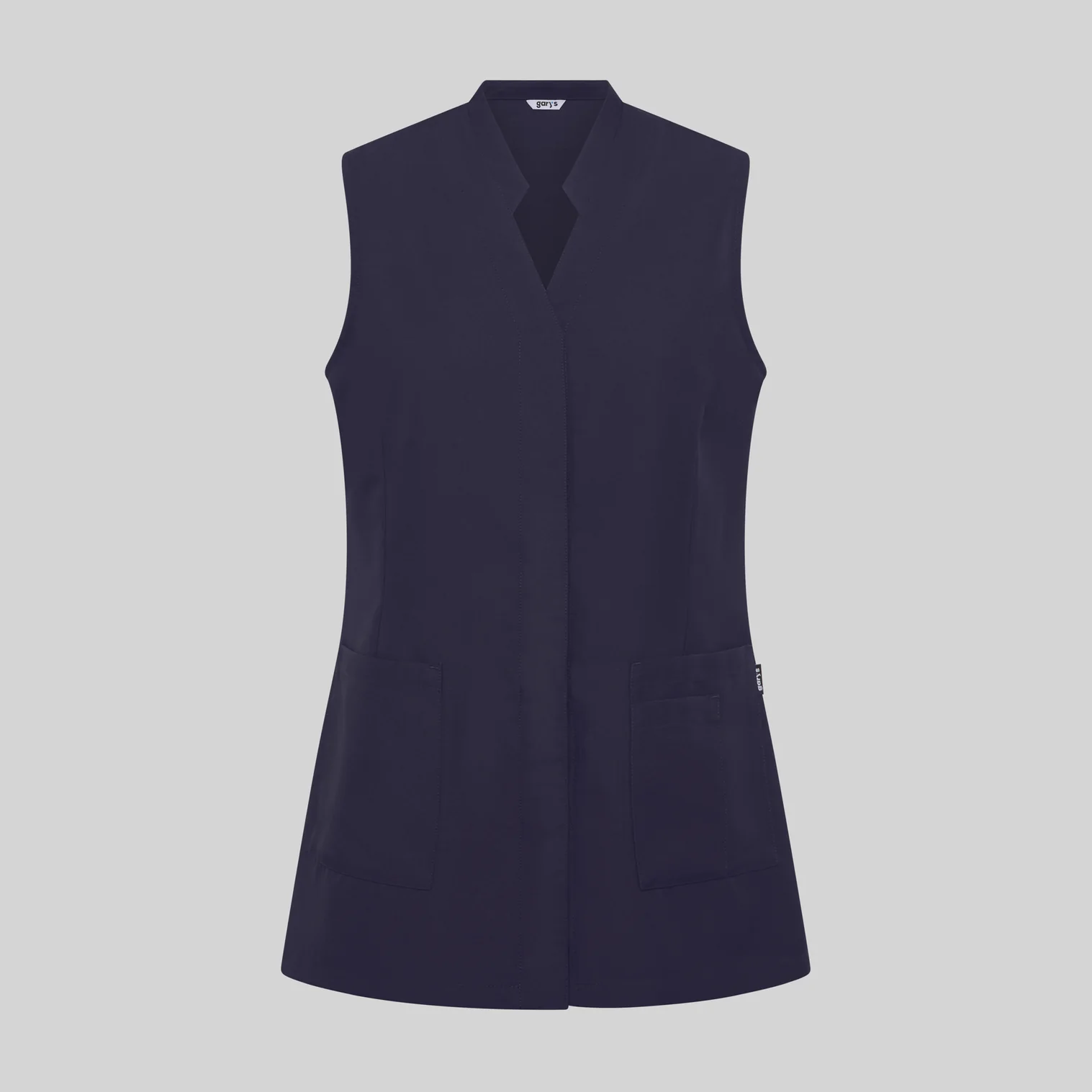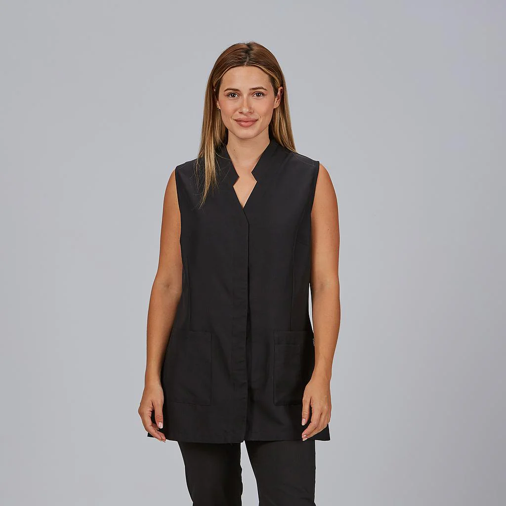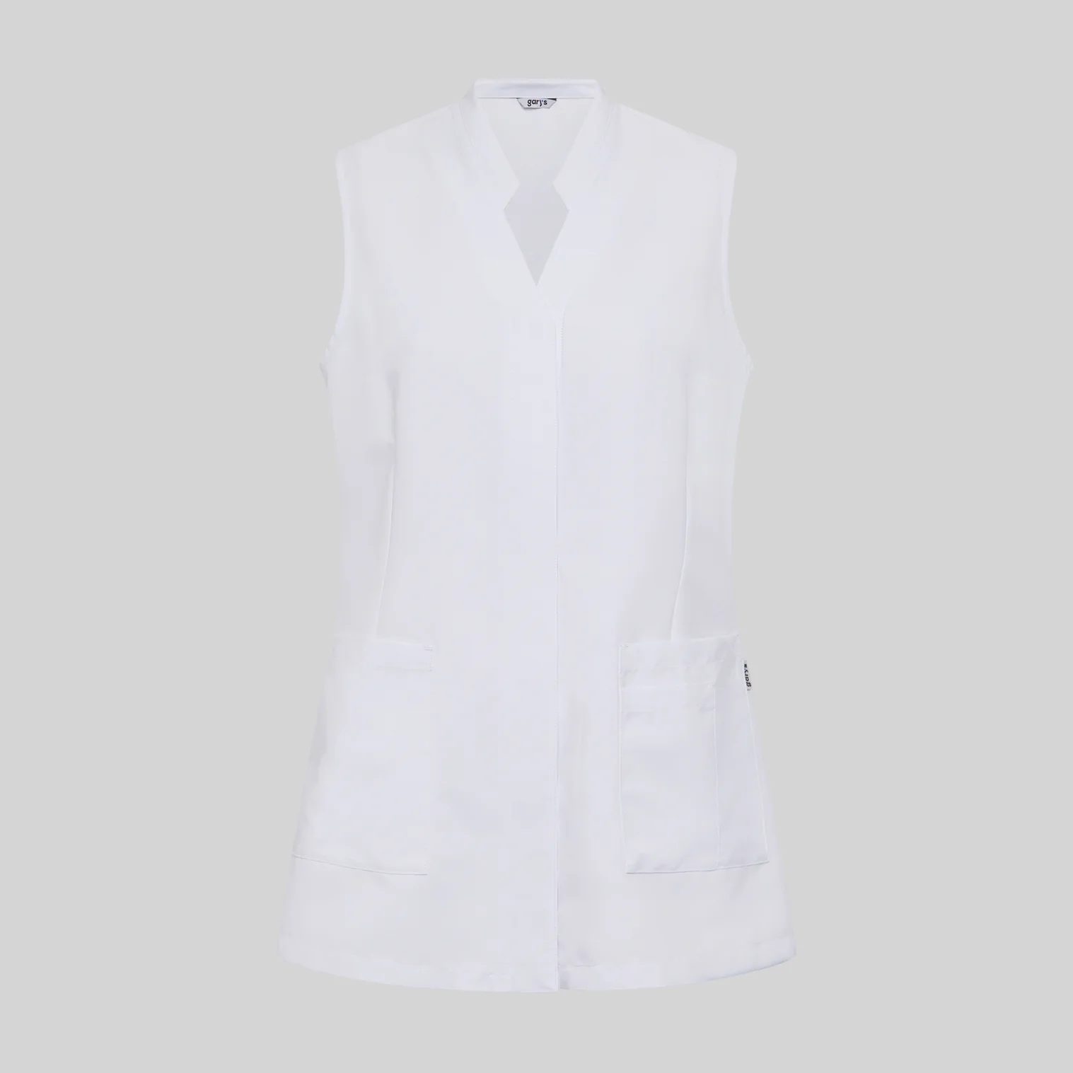 Bata sin mangas ZOE de Garys está diseñada para ofrecer comodidad, ligereza y un ajuste favorecedor, siendo una prenda ideal para profesionales que buscan practicidad y una imagen cuidada durante su jornada laboral.