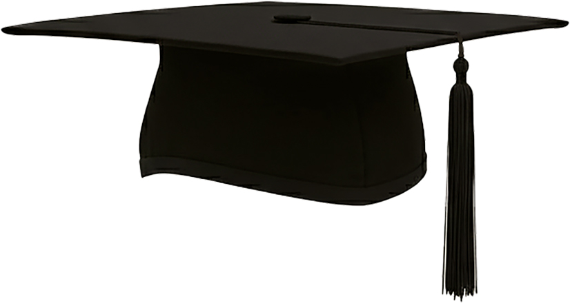 Birrete de graduación en microfibra flexible con panel superior semi-rígido y borla decorativa. Cómodo, elegante y perfecto para ceremonias académicas.