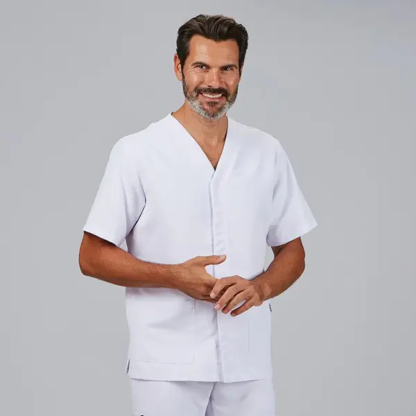 - Blusa sanitaria para hombre con diseño moderno y profesional