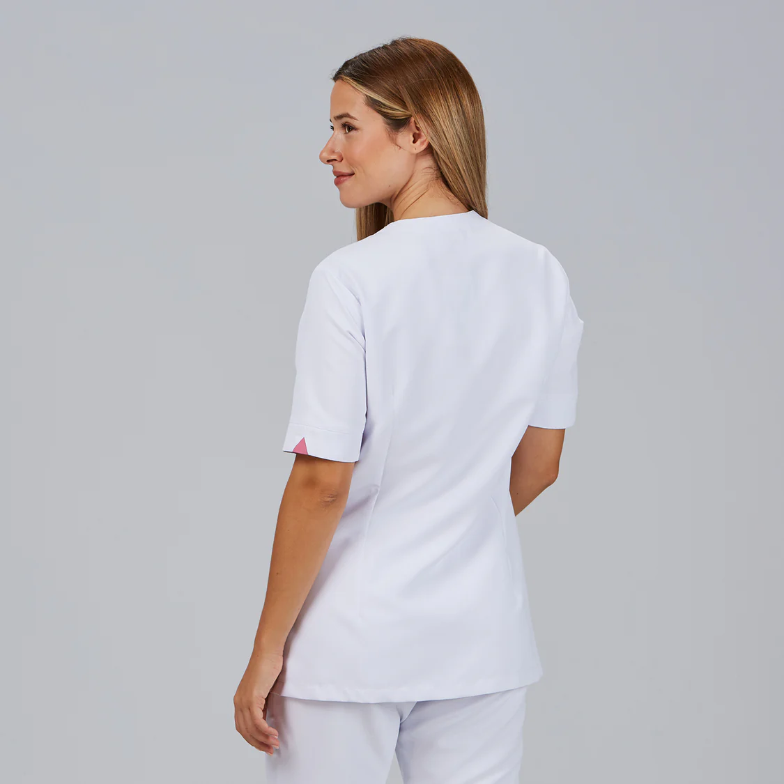 • Cuello en pico cómodo y profesional