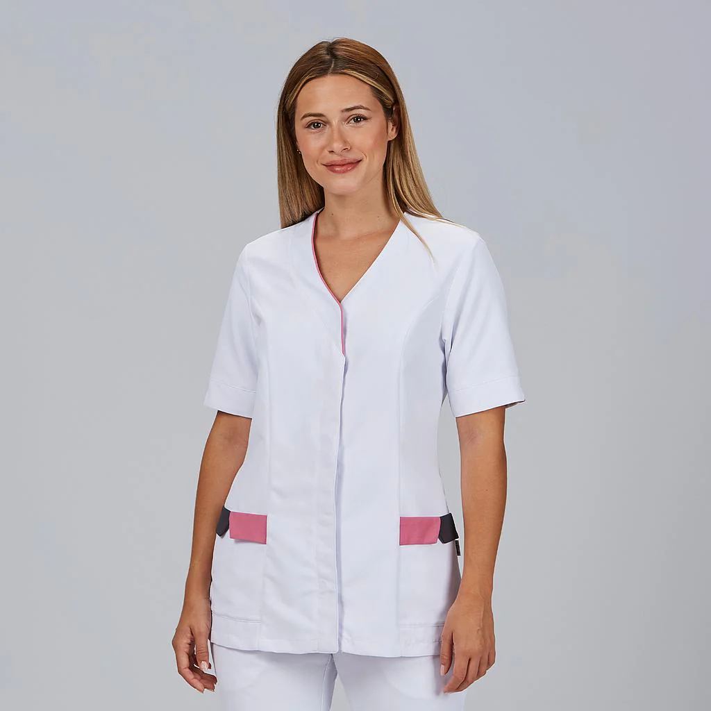 La Blusa Mujer CRIS es una prenda profesional diseñada para ofrecer comodidad, higiene y estilo en entornos sanitarios. Su diseño moderno y funcional la convierte en una opción ideal para enfermeras, médicos y profesionales de la salud que buscan un uniforme práctico, resistente y fácil de mantener.