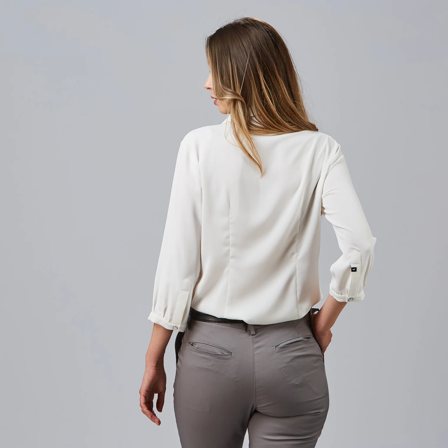 - Cuello con solapa y lazo decorativo: Aporta un toque sofisticado y femenino, ideal para destacar en el entorno profesional.