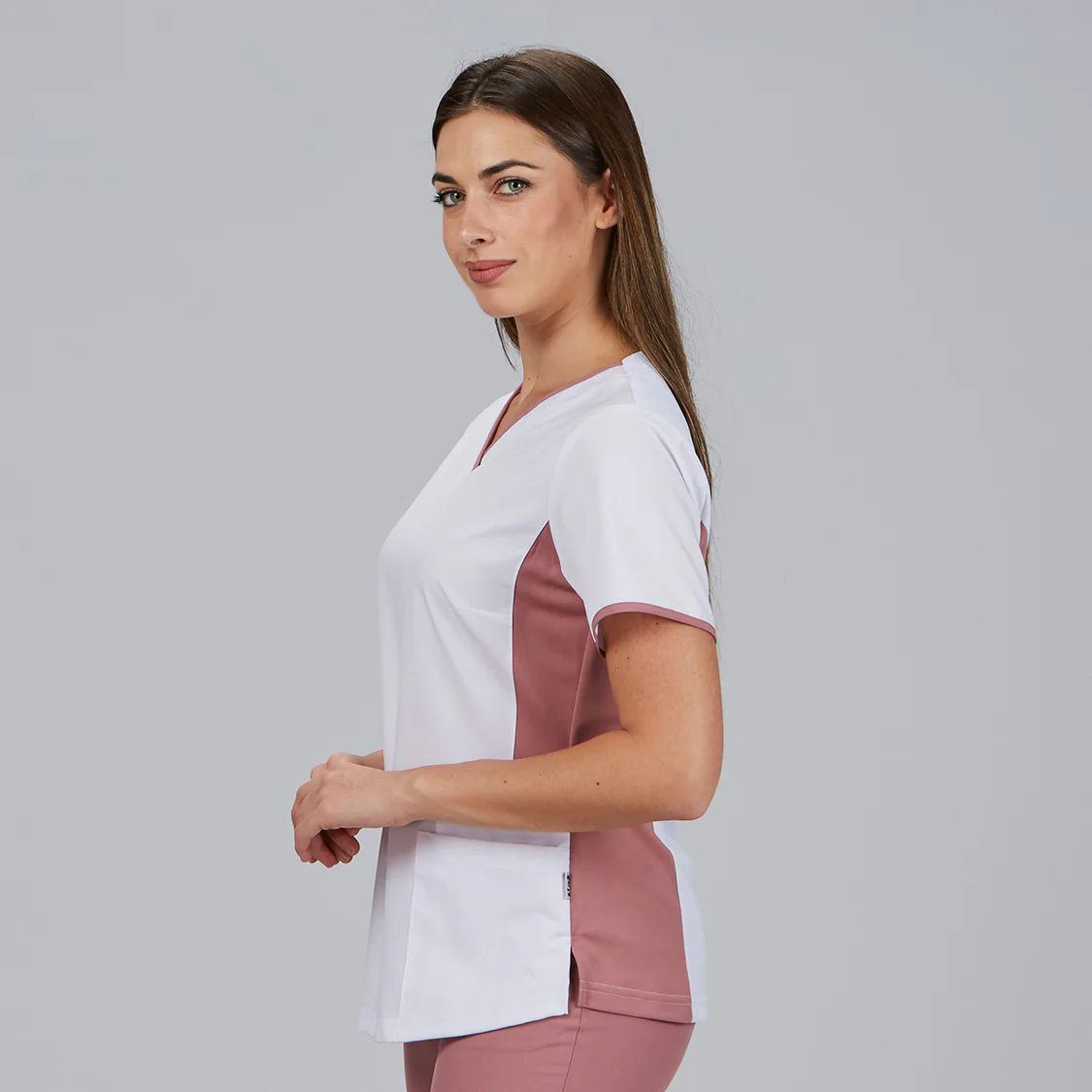 La blusa mujer CLEO escote pico está diseñada para profesionales que necesitan rendimiento, comodidad y una imagen cuidada durante toda la jornada laboral. Su diseño técnico y moderno la convierte en una opción ideal para entornos como la sanidad, clínicas, estética o atención al cliente.
