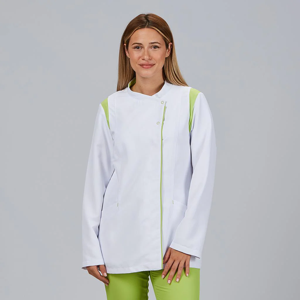Está recomendada para sanidad, clínicas, hospitales, farmacias, estética, laboratorios y otros entornos donde se necesite una prenda cómoda, higiénica y elegante.