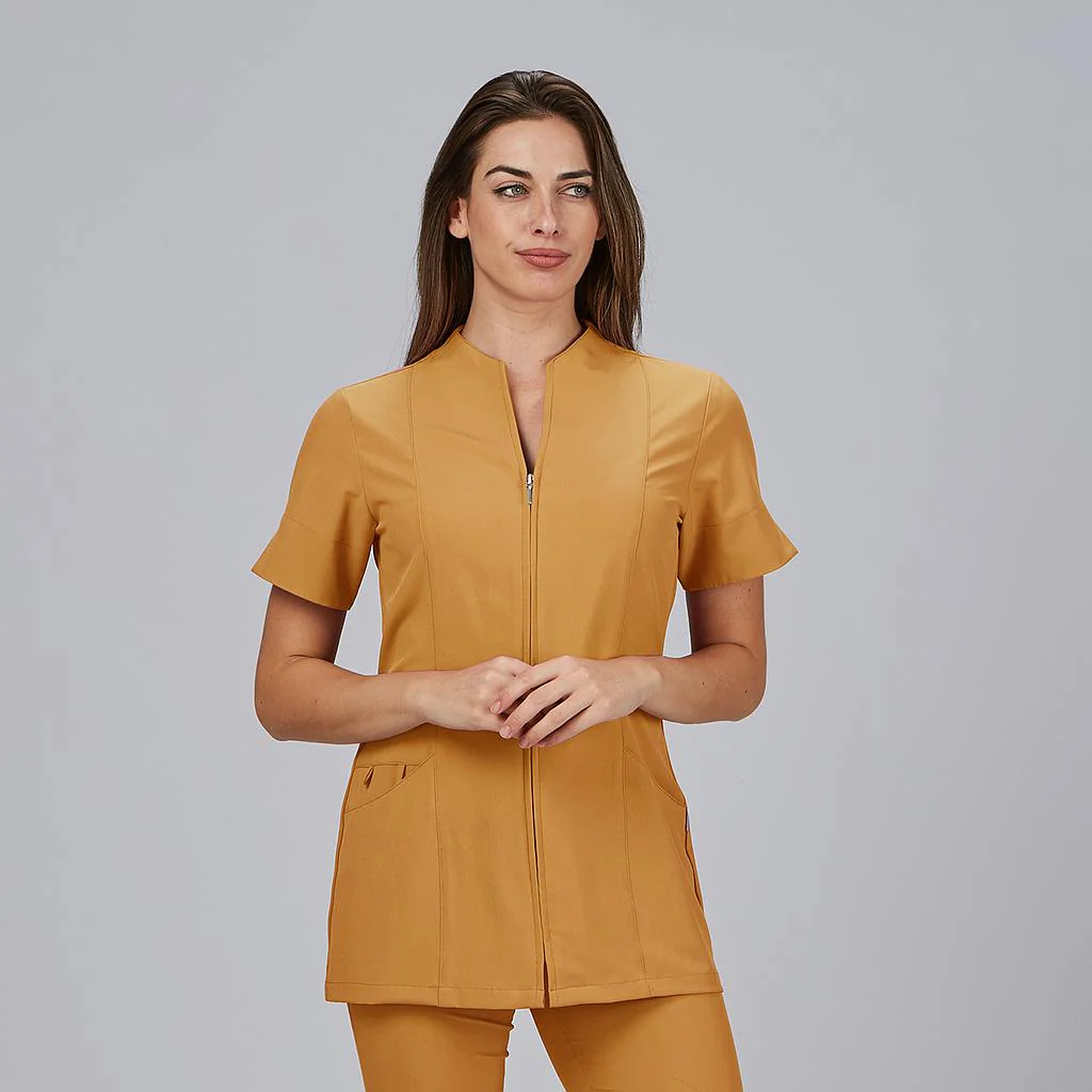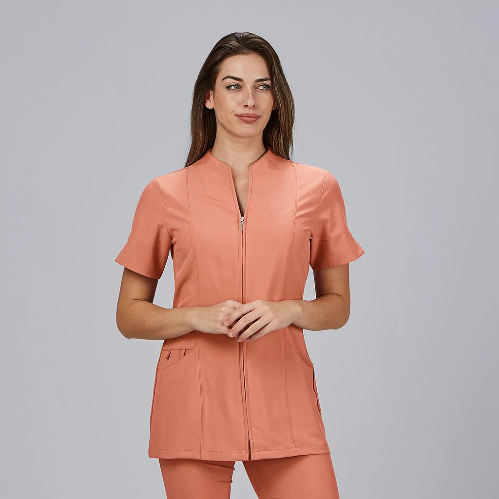 La Blusa YANIRA puede ser una buena opción para profesionales que necesitan una prenda cómoda y ligera para el trabajo diario. Su tejido elástico facilita el movimiento durante la jornada, mientras que el cierre con cremallera y las aberturas laterales permiten trabajar con mayor comodidad. Es una prenda práctica para entornos como sanidad, estética o atención al público, donde se requiere movilidad y una imagen profesional.