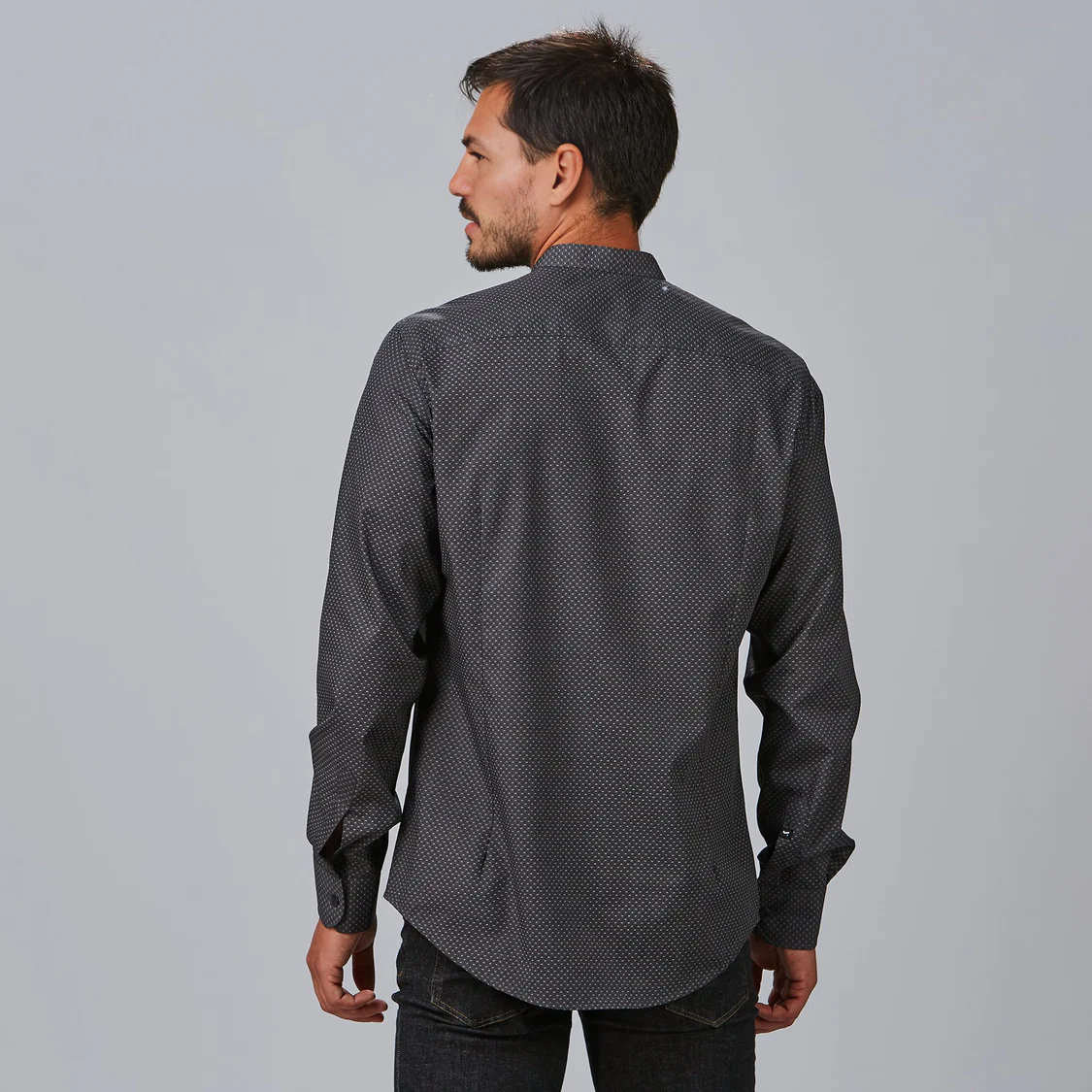 Las pinzas y el canesú en la espalda aseguran un ajuste perfecto, mientras que los puños abotonados aportan un acabado elegante y funcional.