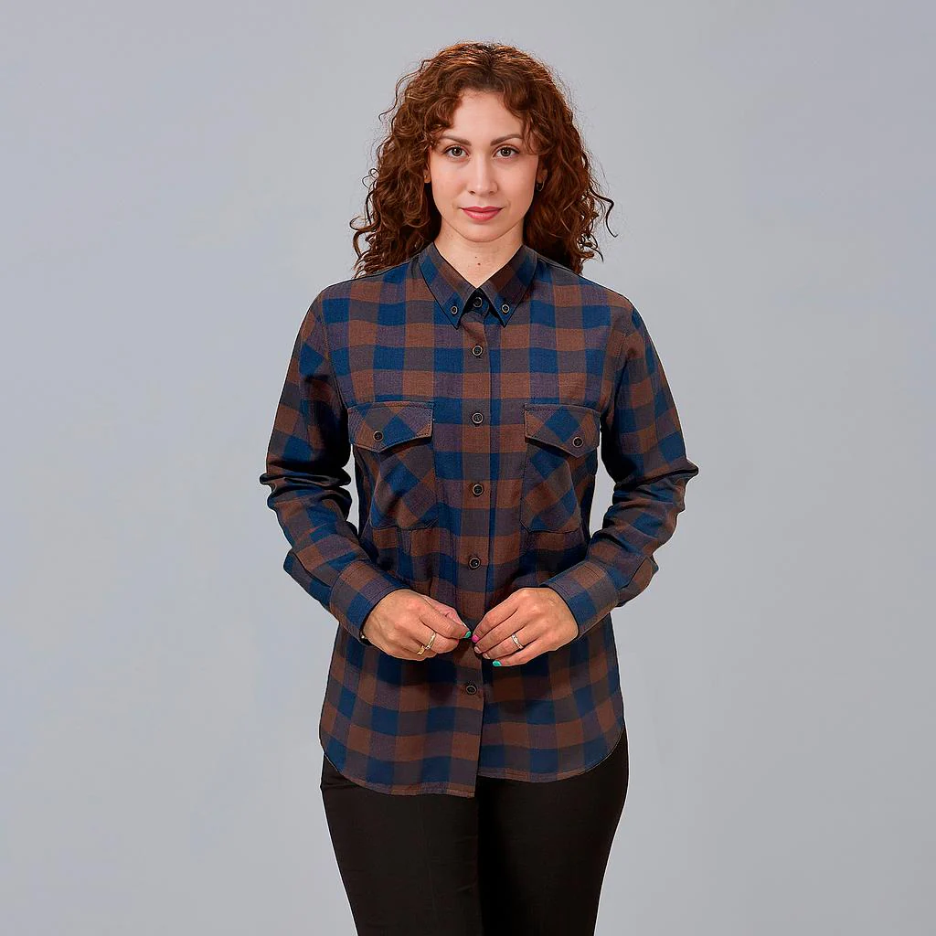 Disponible en combinaciones celeste-marino y marrón-marino, esta camisa ofrece una gran versatilidad, adaptándose a distintos estilos y entornos laborales.