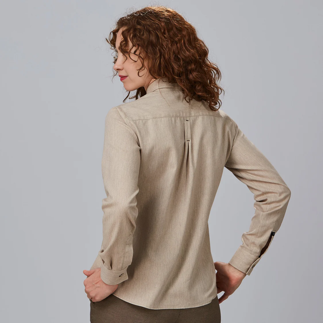 Disponible en color arena, esta camisa destaca por su versatilidad, siendo fácil de combinar con diferentes prendas y estilos, tanto en uniformes como en looks profesionales.