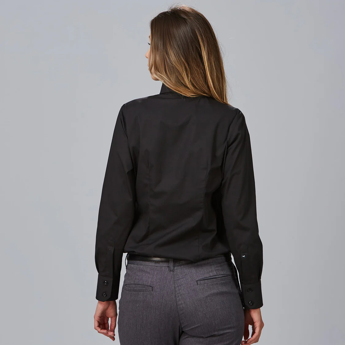 El diseño se completa con manga larga y puños abotonados, aportando un acabado formal y sofisticado, ideal para entornos laborales exigentes.