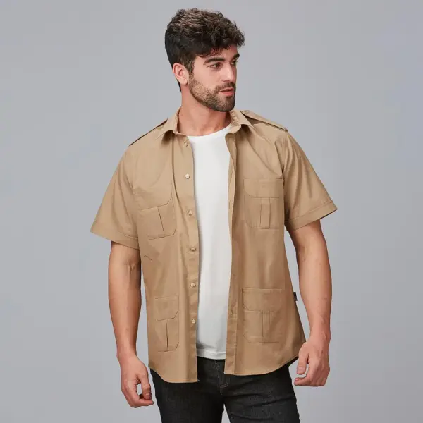 La camiseta unisex Aciron con 4 bolsillos es una prenda profesional diseñada para ofrecer funcionalidad, comodidad y una imagen moderna en sectores donde la movilidad y la practicidad son fundamentales. Su estilo tipo sahariana de manga corta la convierte en una opción ideal para peluquerías, barberías, centros de belleza y comercios que buscan un uniforme útil y con personalidad.