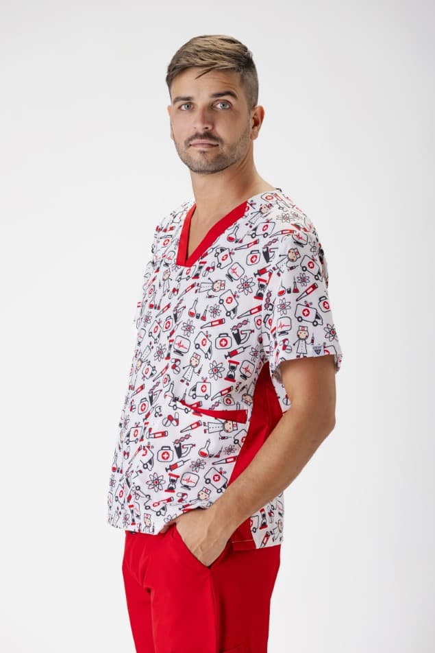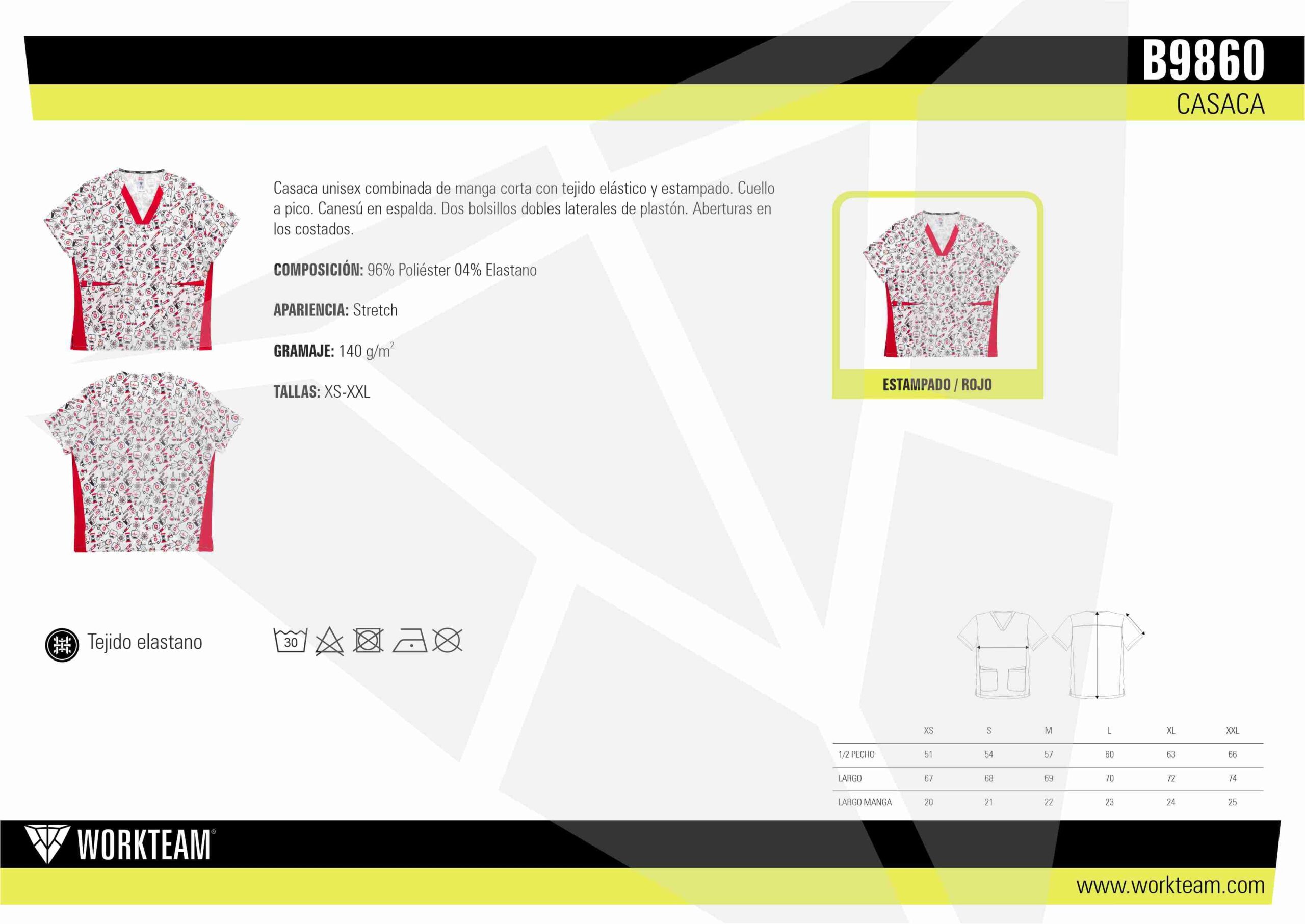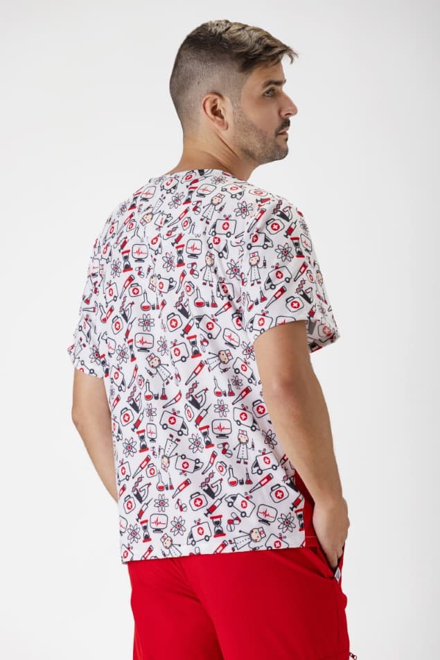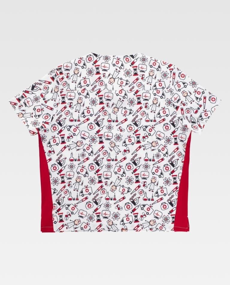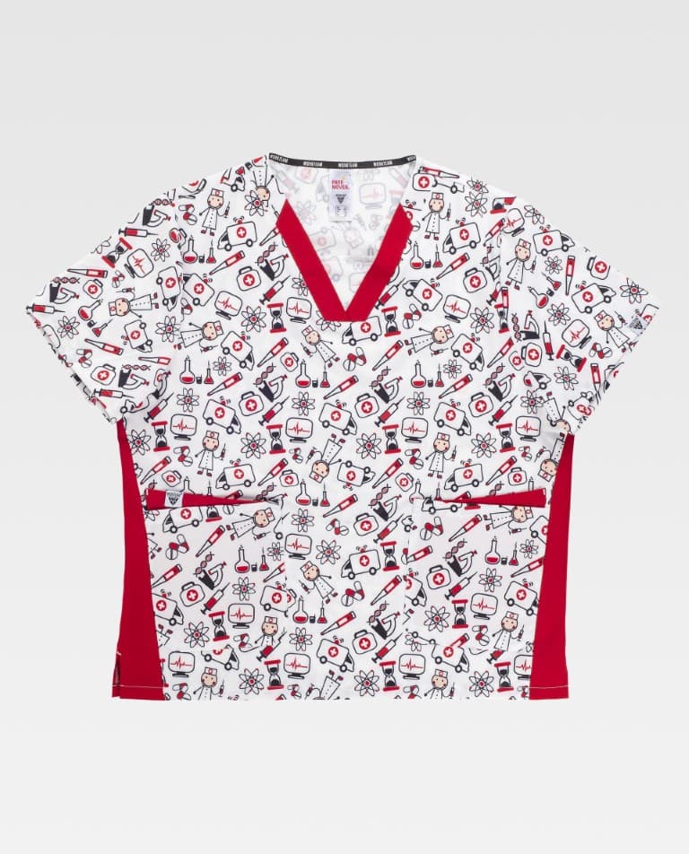 • Tejido elástico combinado con estampado: Aporta mayor libertad de movimiento, comodidad durante toda la jornada y un estilo más dinámico y diferenciador.