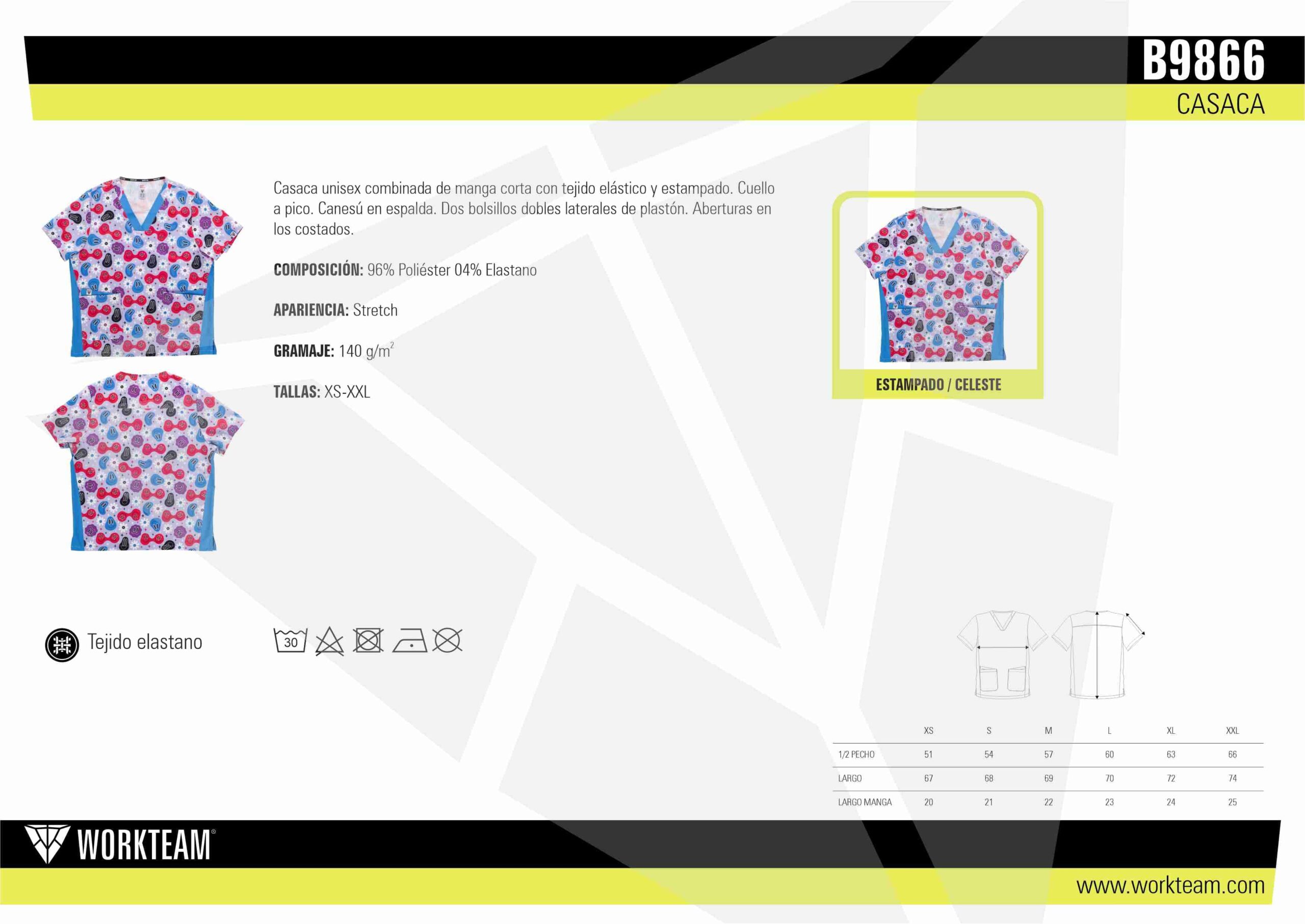 Casaca unisex B9866 de Workteam está diseñada para ofrecer comodidad, elasticidad y una imagen profesional moderna, siendo una prenda ideal para quienes buscan un uniforme funcional con un toque actual gracias a su tejido elástico combinado con estampado.