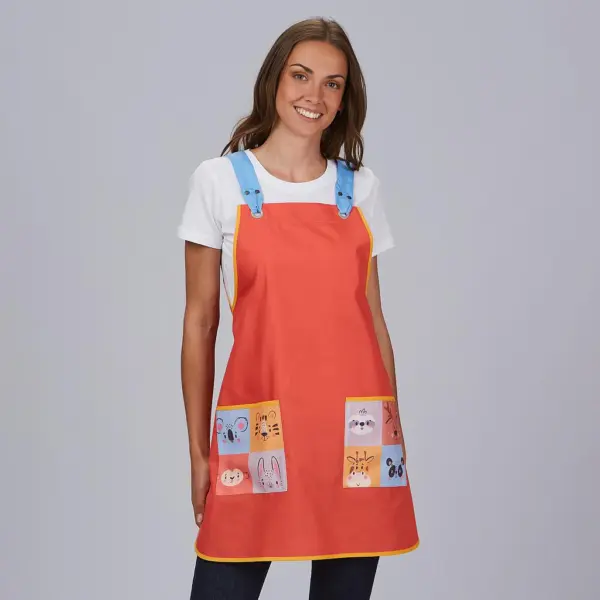 La casulla ZOO tipo peto es la prenda ideal para profesionales que buscan un uniforme alegre, cómodo y con personalidad, perfecto para entornos dinámicos y creativos.