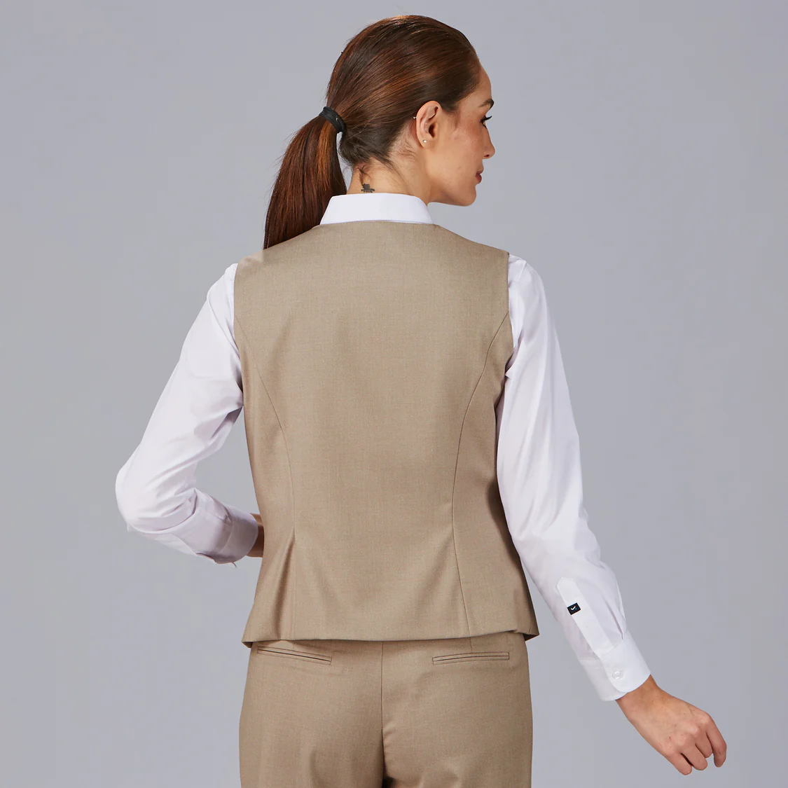 Con un corte semi entallado y costadillos de entalle, este chaleco realza la silueta sin comprometer la comodidad, ofreciendo un ajuste favorecedor y profesional.