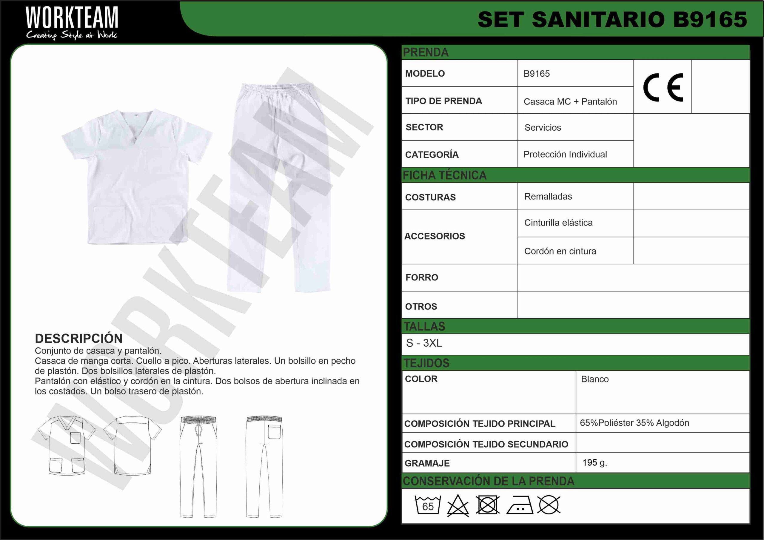 Conjunto sanitario casaca manga corta pantalón elástico lavado 65º B9165 Workteam