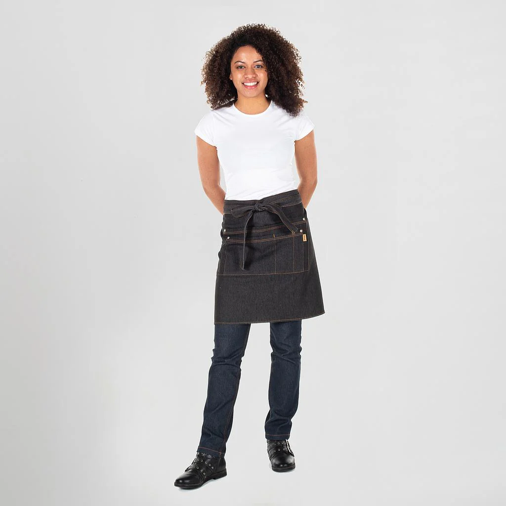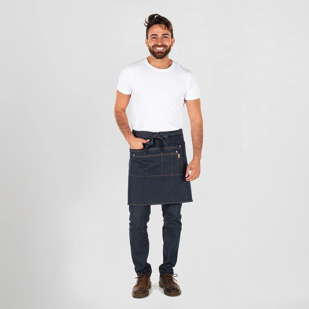 El delantal corto sin peto Jordania vaquero elástico es la elección ideal para profesionales que buscan comodidad, estilo moderno y máxima funcionalidad en su entorno laboral.