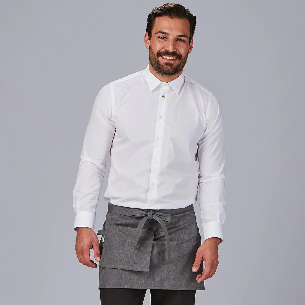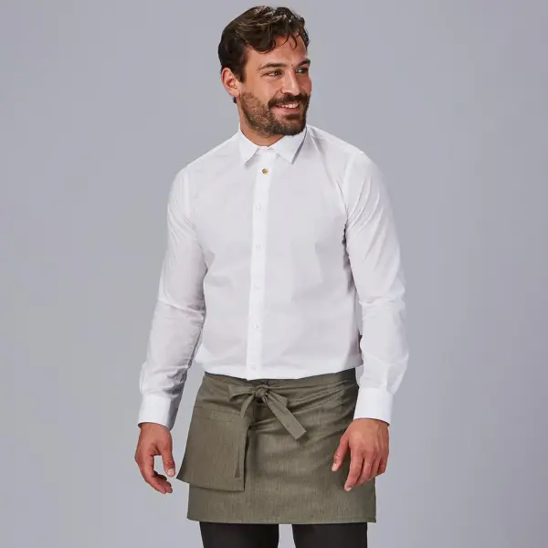 El delantal corto sarga reciclada 35×67 cm es la opción ideal para profesionales que buscan sostenibilidad, comodidad y funcionalidad en su uniforme laboral.