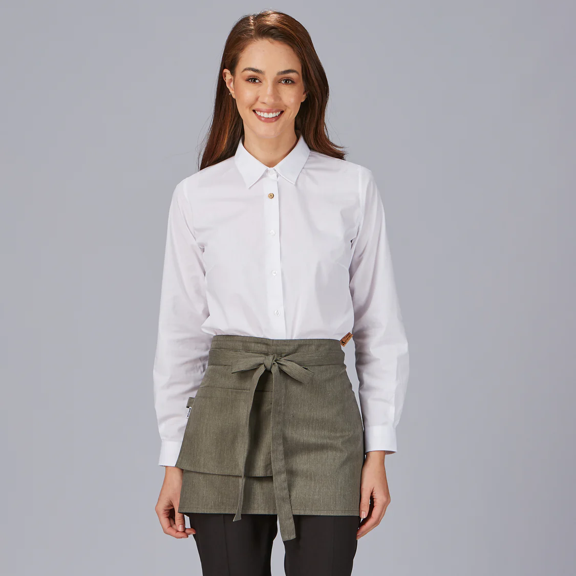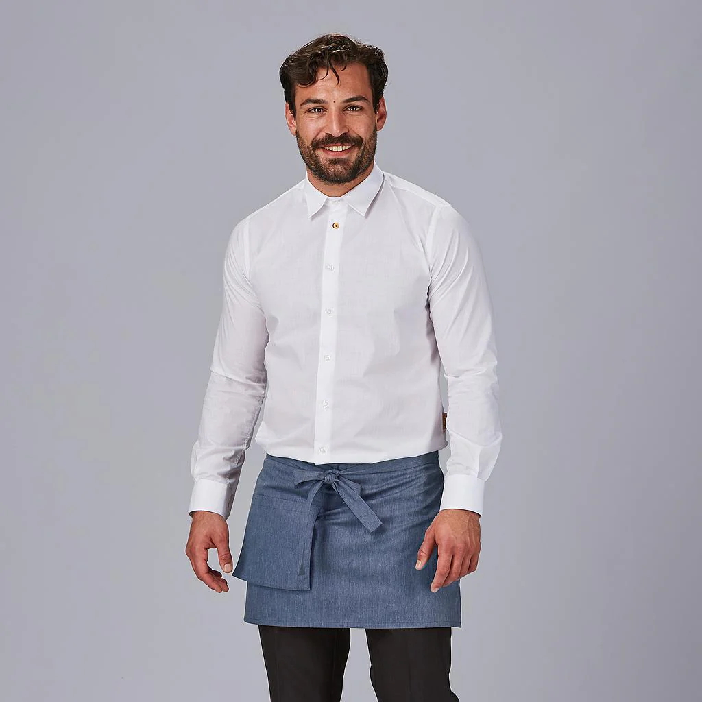 El delantal corto sarga reciclada es la elección perfecta para quienes buscan una prenda ligera, funcional y comprometida con el medio ambiente, ideal para el día a día profesional.