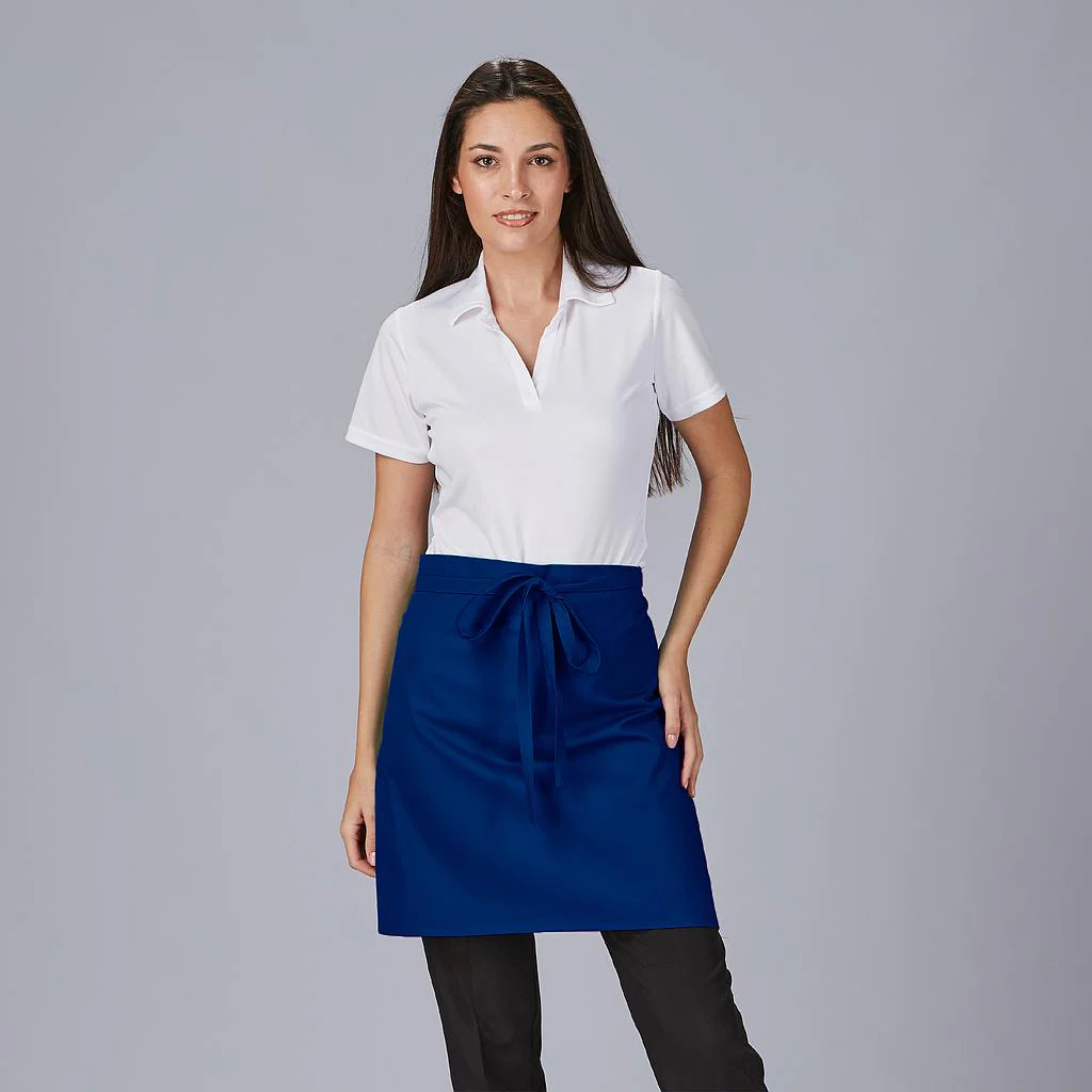 El delantal corto sin bolsillos en sarga es una prenda esencial para profesionales que buscan simplicidad, comodidad y una imagen limpia en su entorno laboral.