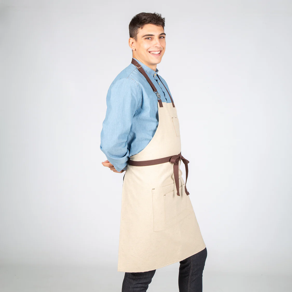 El delantal con peto beige es la elección perfecta para quienes buscan una prenda funcional, resistente y con diseño elegante, ideal para el trabajo diario.