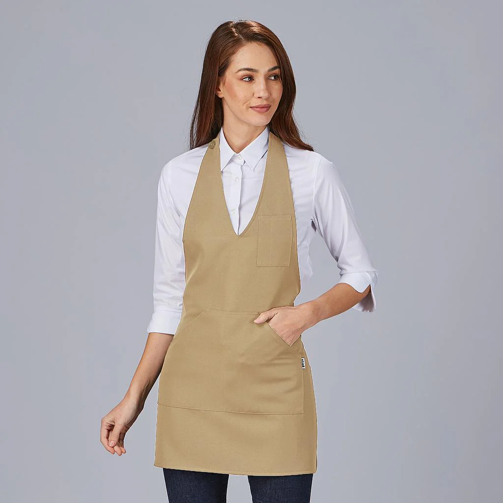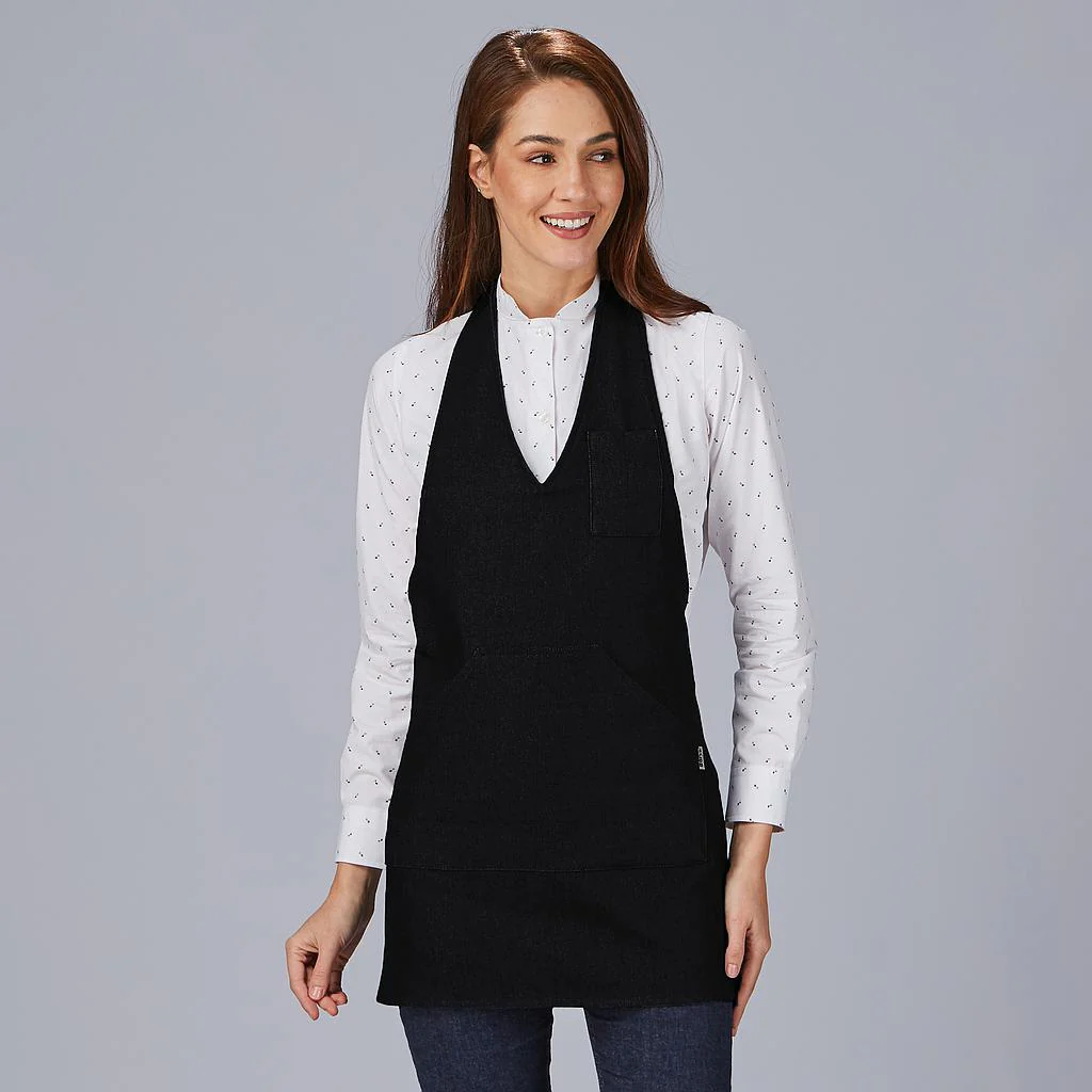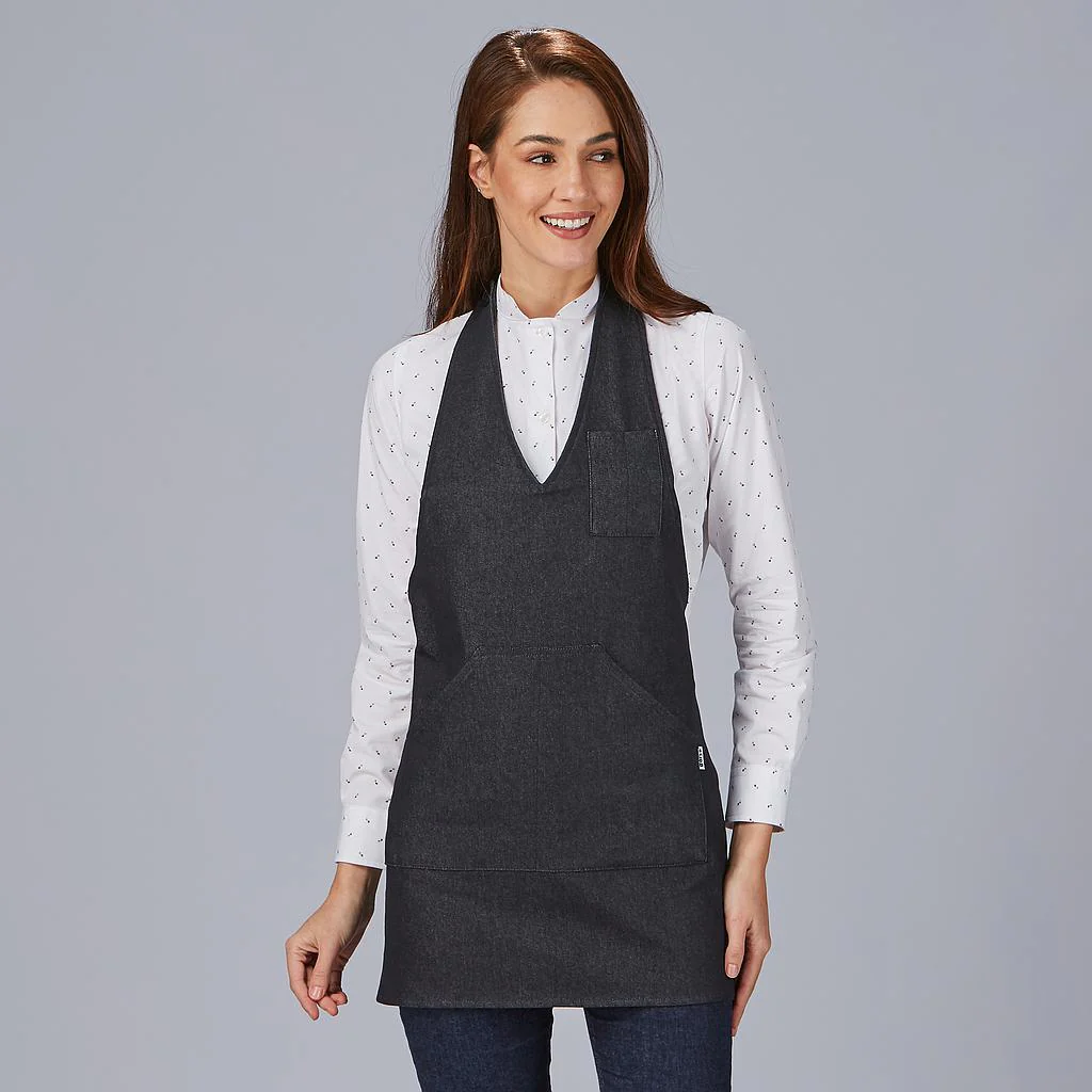 Diseñado para destacar en sectores como la hostelería y la restauración, este delantal combina estilo profesional y practicidad, adaptándose perfectamente al ritmo de trabajo diario.
