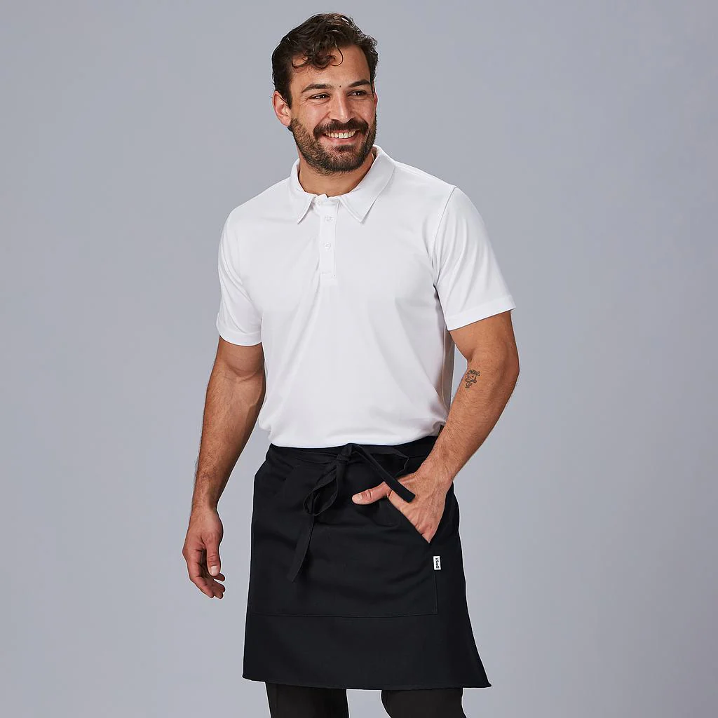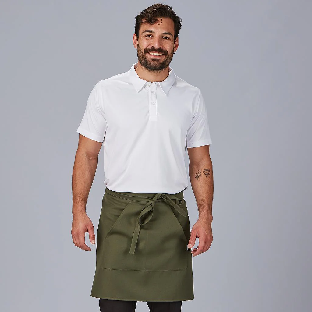 Su diseño corto sin peto permite trabajar con mayor agilidad, siendo ideal para entornos dinámicos como hostelería, restauración o comercio.