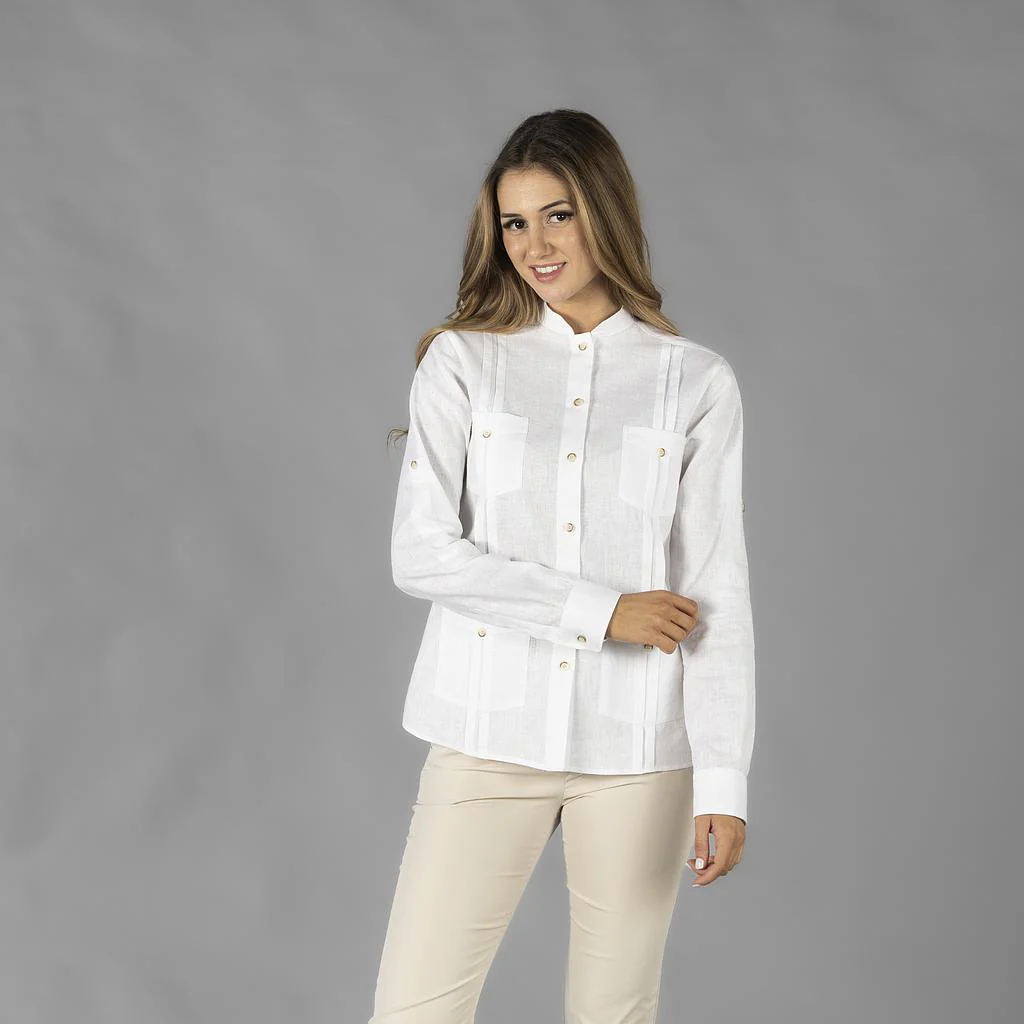 Guayabera profesional para mujer con diseño elegante y funcional