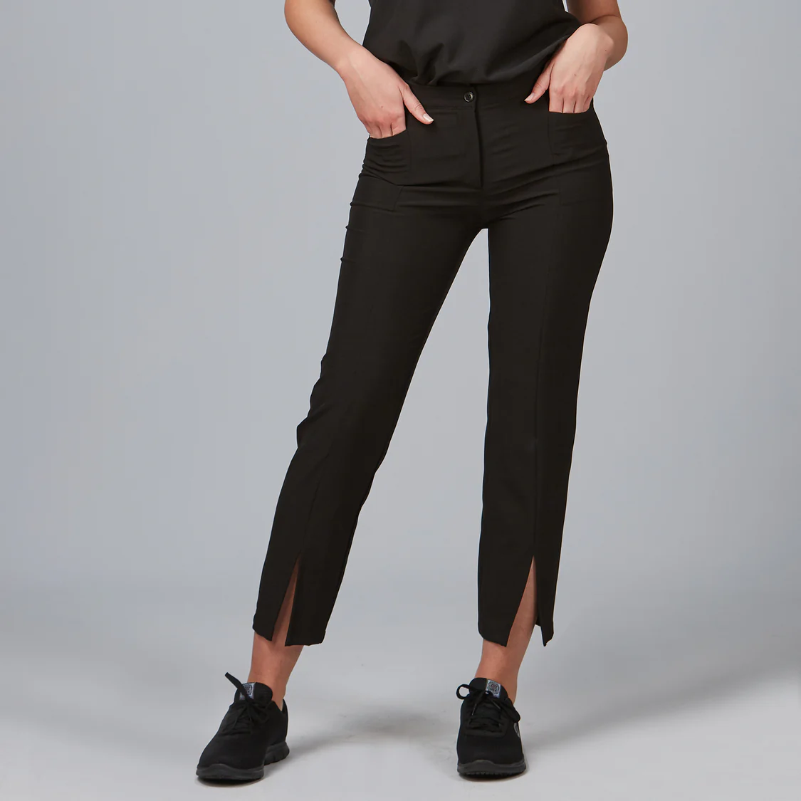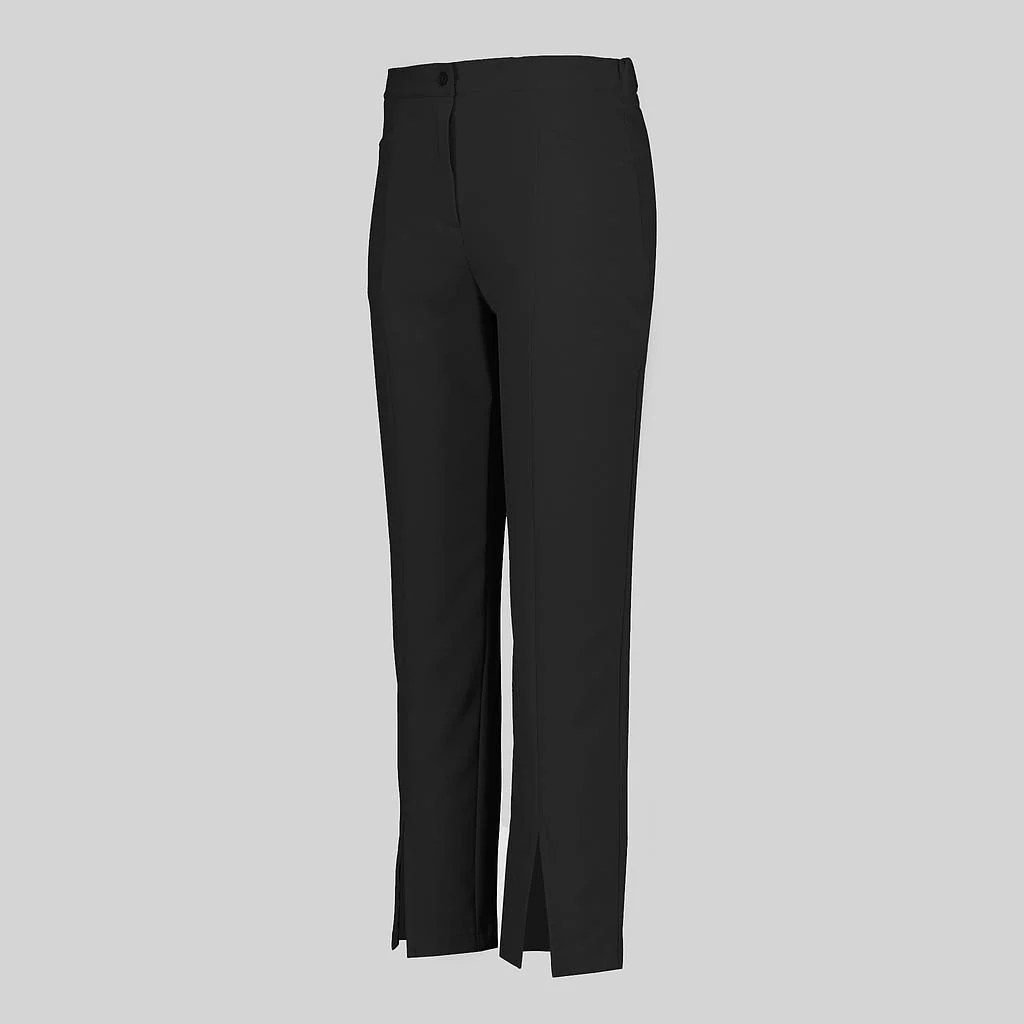 El pantalón para mujer con abertura central en bajo es una prenda diseñada para ofrecer comodidad, estilo y funcionalidad en el entorno laboral. Su diseño moderno con aberturas delanteras en el bajo aporta un toque elegante y diferenciador, ideal para profesionales que buscan una imagen cuidada sin renunciar al confort.