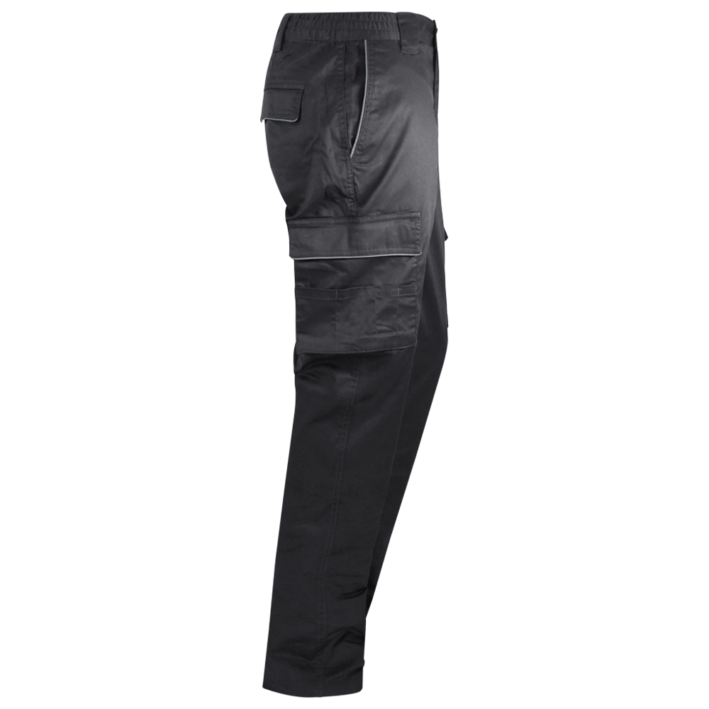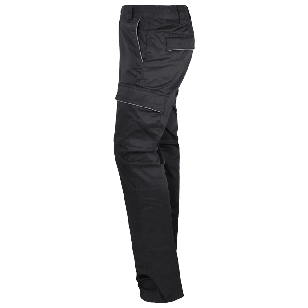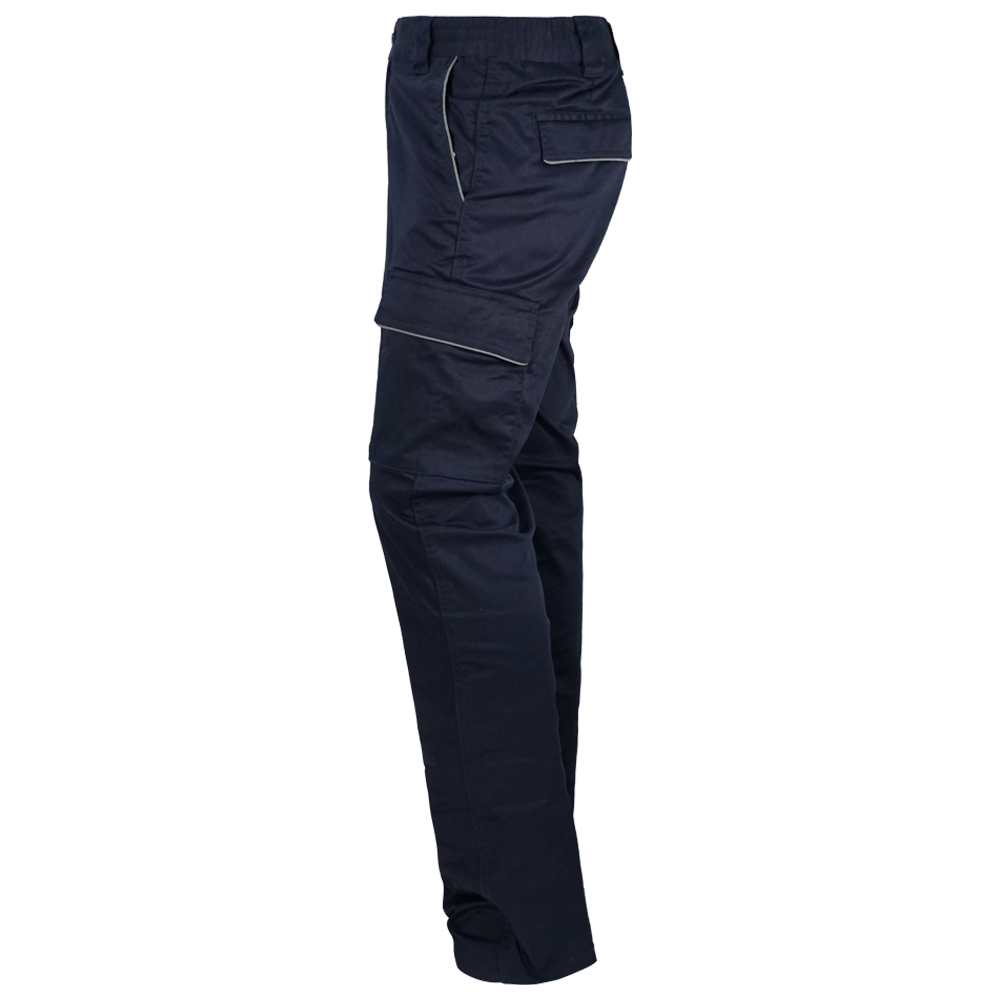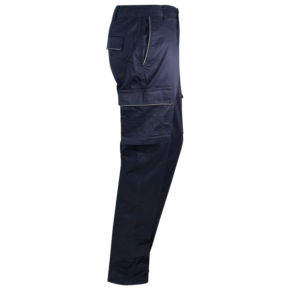 Pantalón multibolsillos elástico con vivos reflectantes WR.3.143 PLUS Worko, ideal para profesionales que necesitan libertad de movimiento, durabilidad y visibilidad en su jornada laboral.