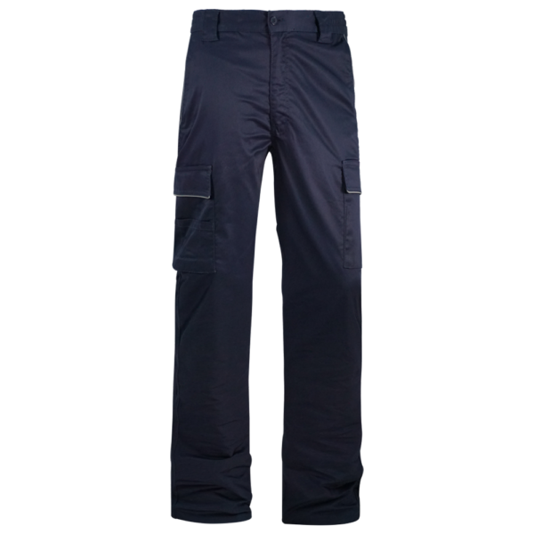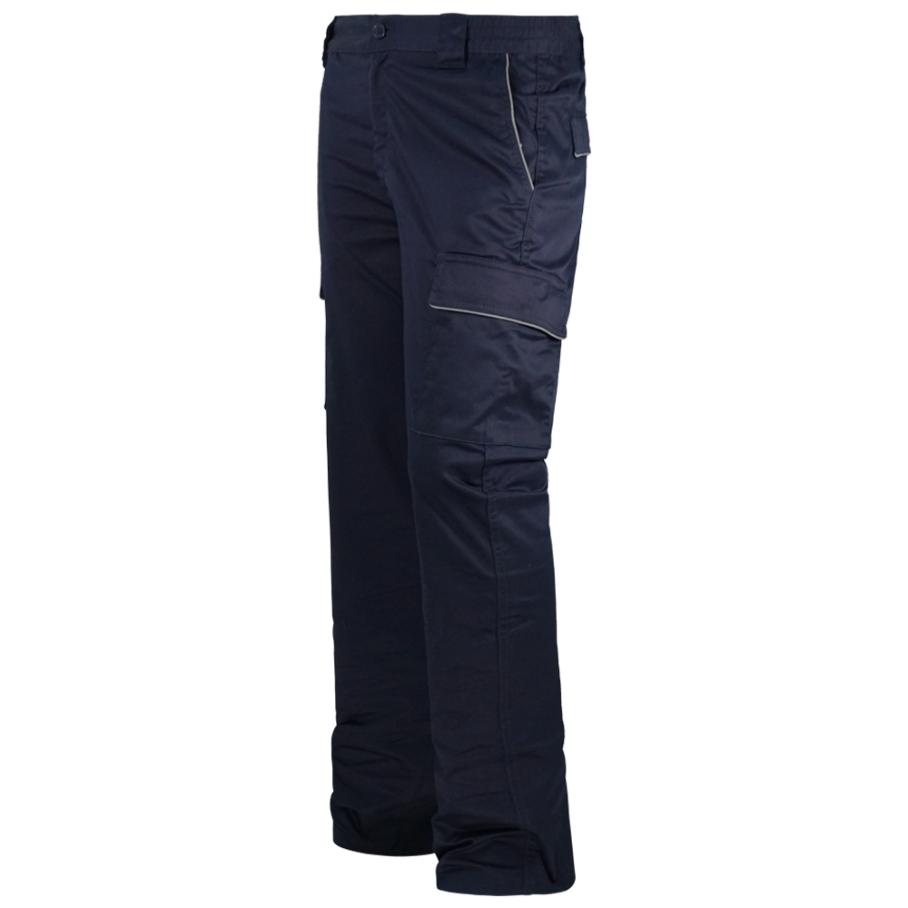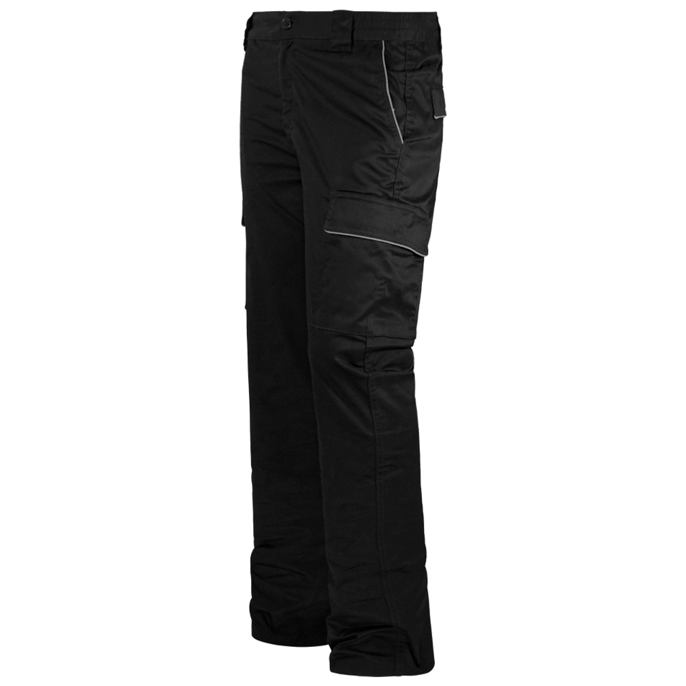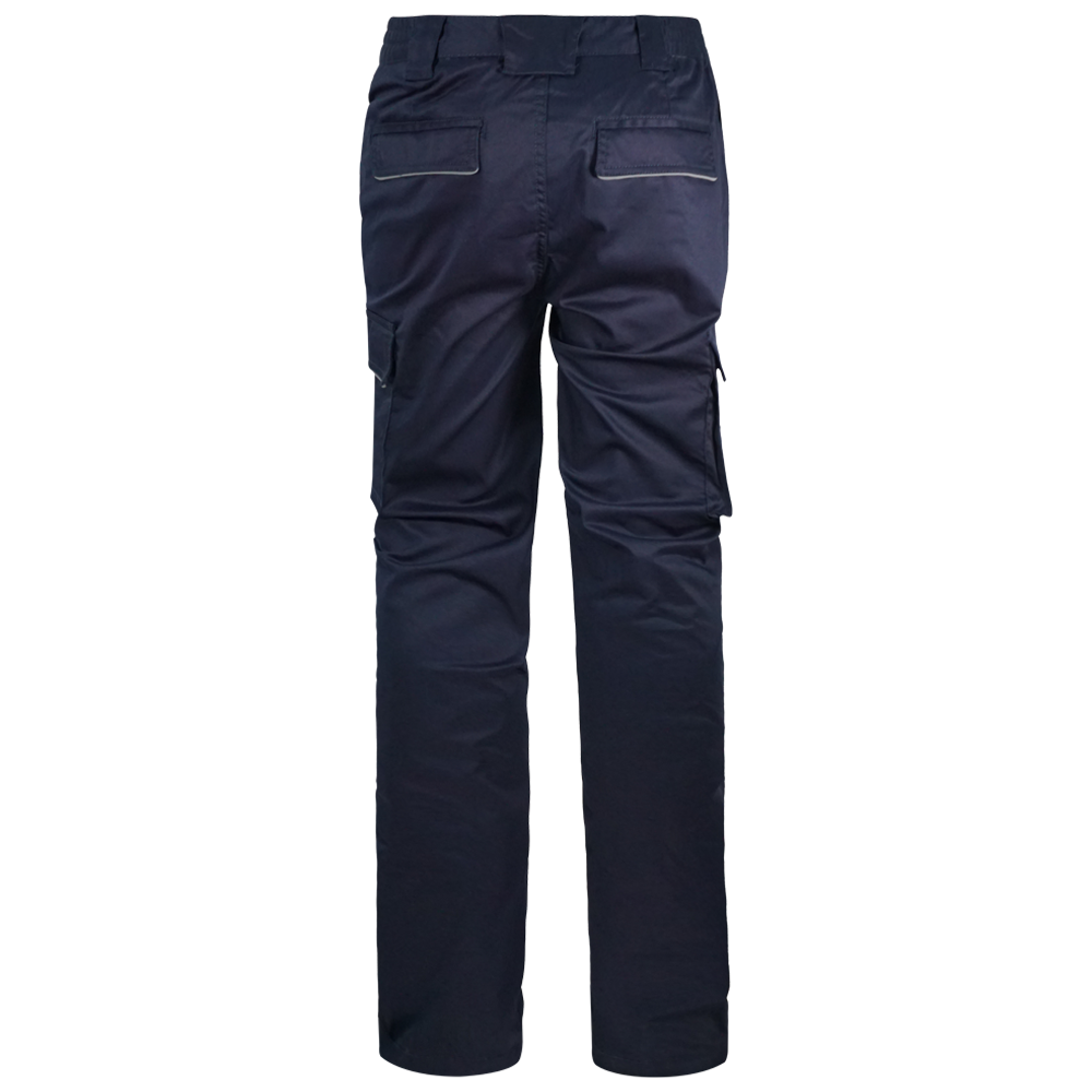 Pantalón multibolsillos elástico con vivos reflectantes WR.3.143 PLUS Worko, ideal para profesionales que necesitan libertad de movimiento, durabilidad y visibilidad en su jornada laboral.