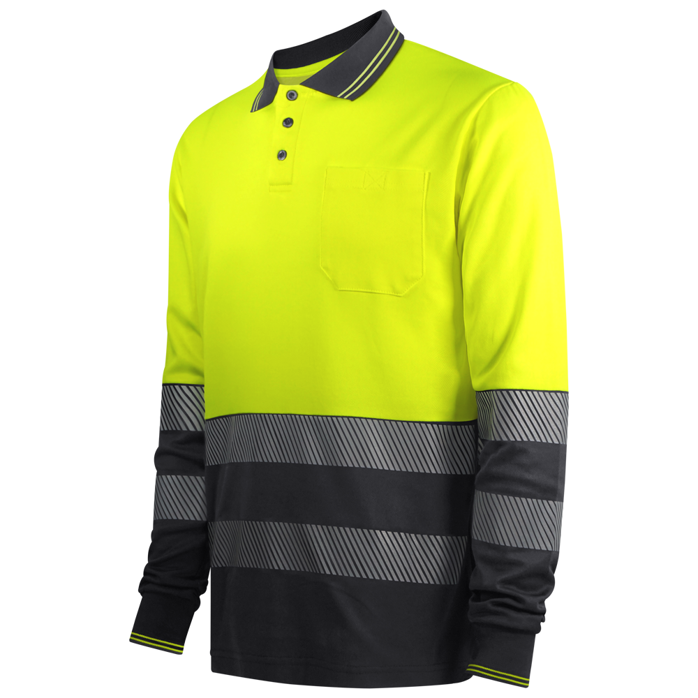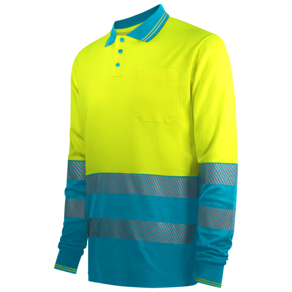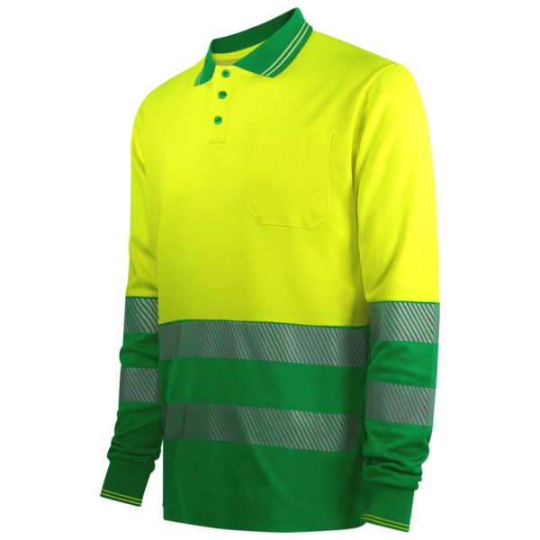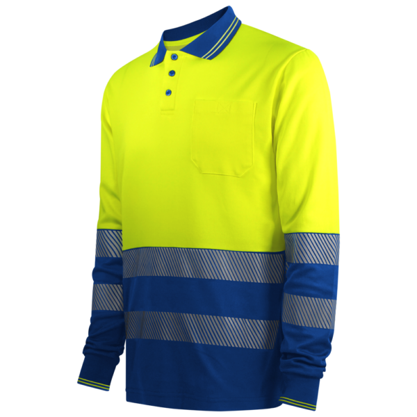 - La combinación de algodón en el interior y poliéster en el exterior proporciona comodidad y resistencia. Además, este polo está equipado con tejido AV y dos bandas reflectantes segmentadas para mejorar la visibilidad en condiciones de poca luz.