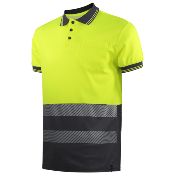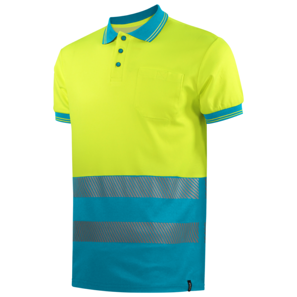 - Polo especial de alta visibilidad con bolsillo frontal izquierdo de parche y cierre de velcro.