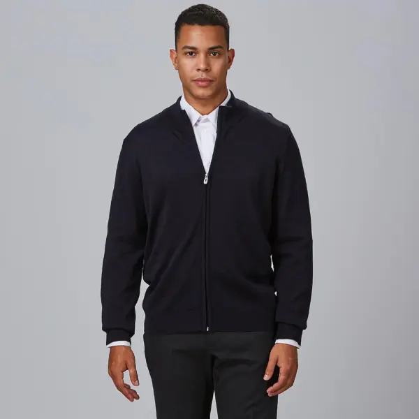 La rebeca de punto fino con cremallera ofrece ligereza, comodidad y estilo profesional. Ideal para uso diario.