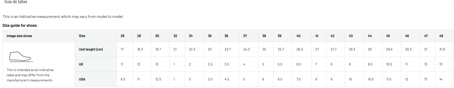 Disponible en tallas 35 a 48.