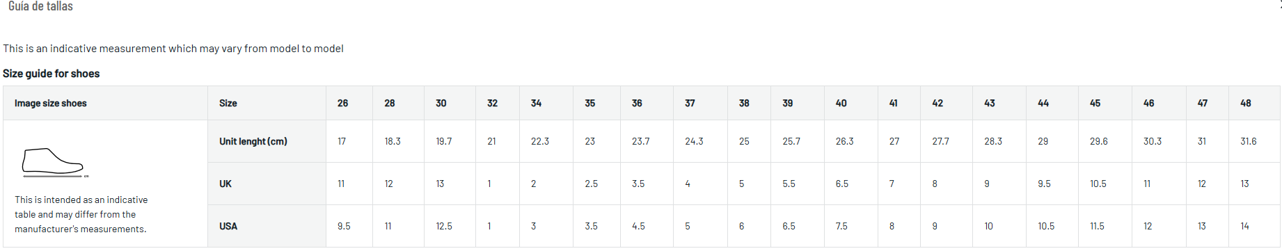 • Amplio rango de tallas