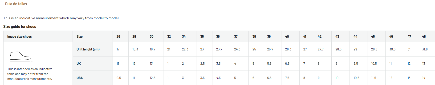 • Amplio rango de tallas