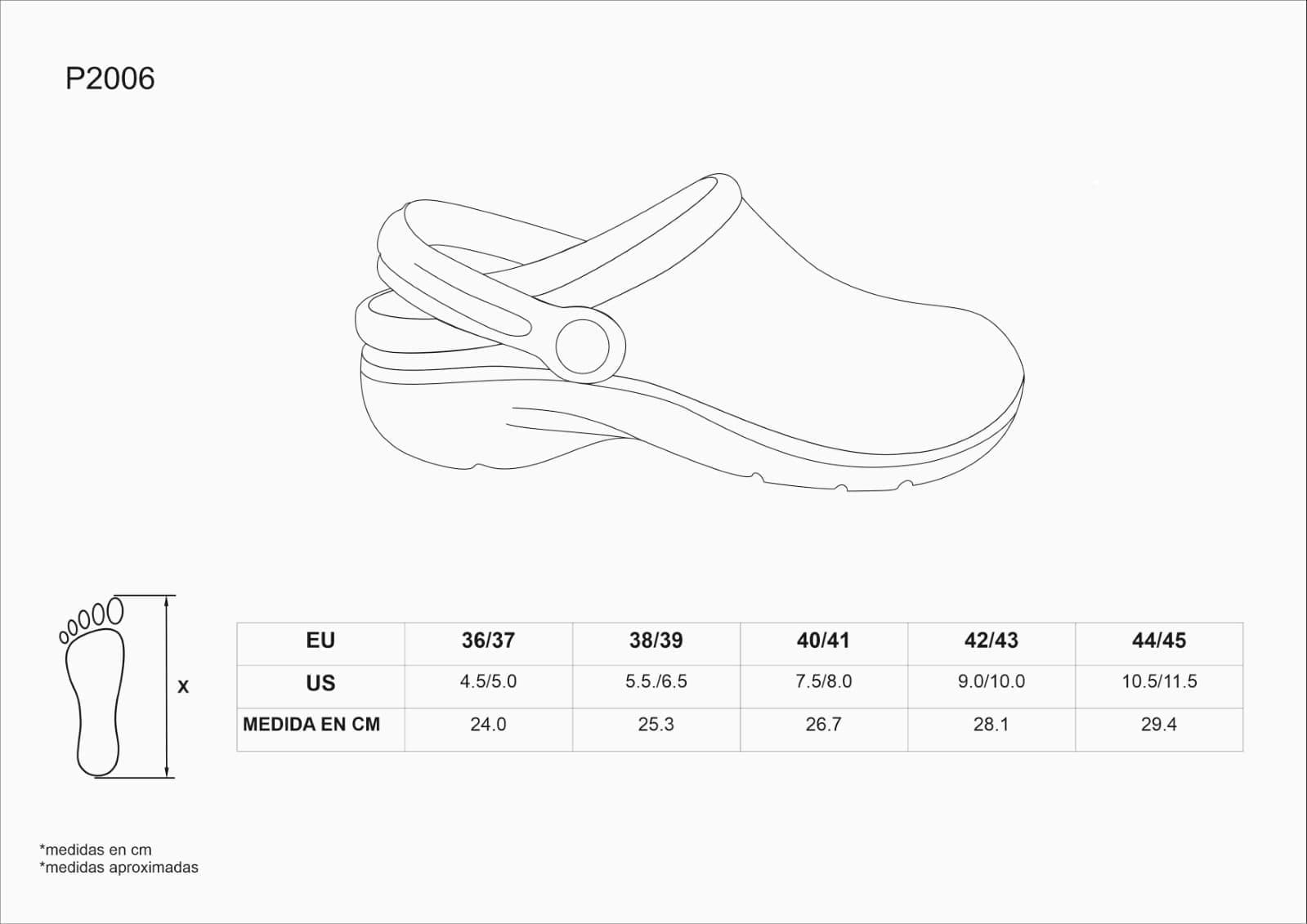 Ideal para sanidad, hostelería, limpieza, estética, peluquería, clínicas, laboratorios y trabajos donde se requiere calzado cómodo y ligero.
